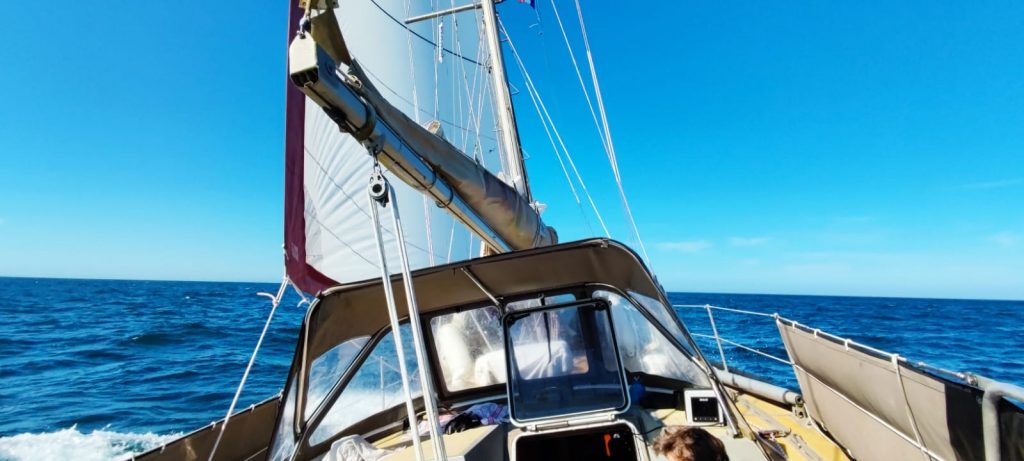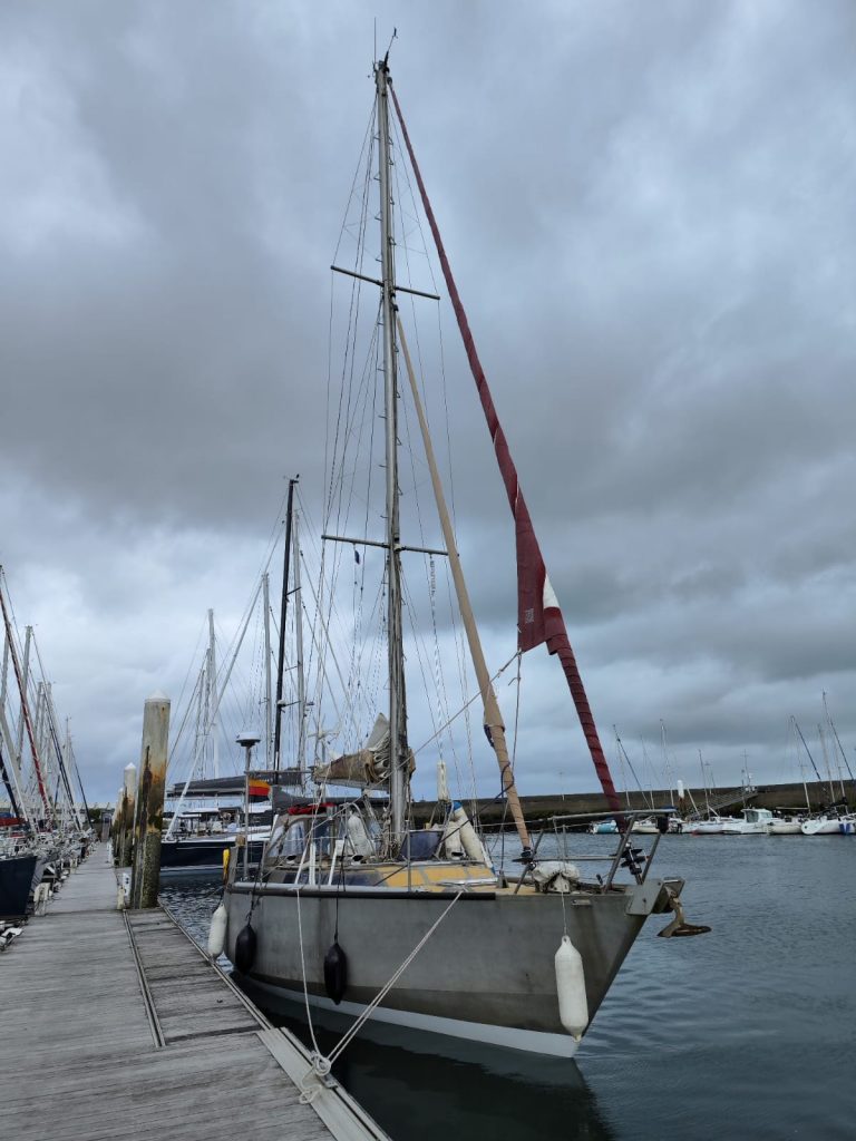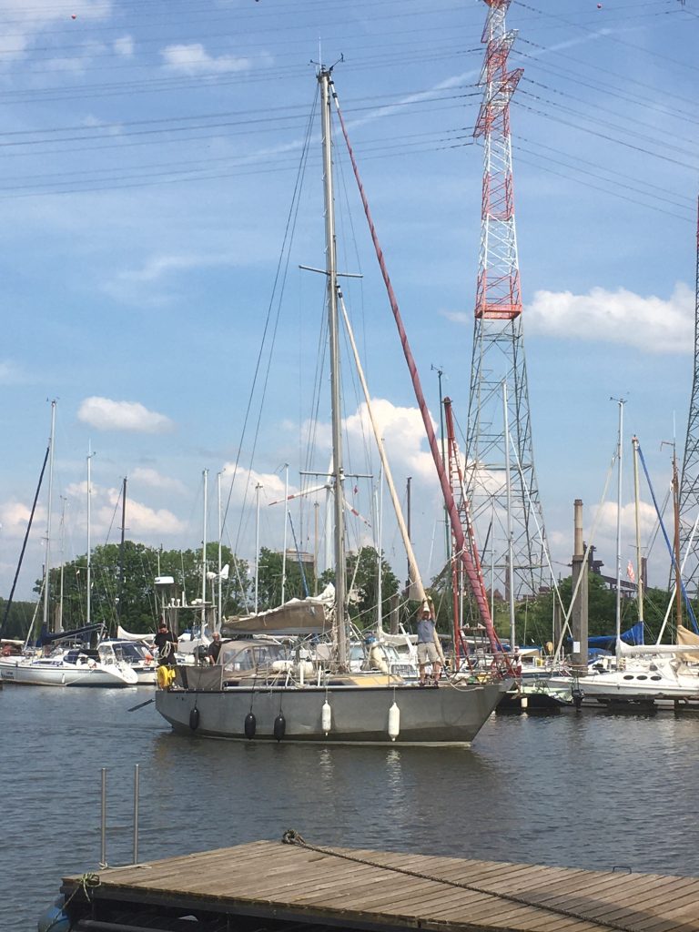 Während der Reise haben wir die Zeit gut genutzt, die SUN zu putzen, zu reparieren und zu optimieren. Die Elektronik wurde mit einem Barometer und einem WiFi-Gateway ergänzt. In Zukunft kann das alte Seatalk-Protokoll mit dem neuen NMEA2K Standard kommunizieren. Bodo putzte die Lazybag, die mit der Zeit leider etwas grün angelaufen war, und die Seile. Zwei neue Mastrutscher wurden eingenäht und neue Seile mit Taklingen versehen. Am Motor haben wir das zu niedrig eingestellte Standgas justiert. Die Pantry wurde intensiv geputzt, der Gasherd glänzt in alter Frische. Wir haben die Küchengeräte ausgetauscht oder ergänzt, Die Wasserpumpe wurde wieder an die Küchenspüle angeschlossen, so dass der Heißwasserhahn und der Kaltwasserhahn auch das liefern, was sie sollen. Die Wassertanks sind jetzt durchgespült und das gelagerte Trinkwasser ist sauber. Die spröden und verschlissenen Wantenverkleidungen sind entfernt und vieles andere mehr konnte verbessert werden. Wir sind glücklich, dass wir unser Ziel so gut erreicht haben und freuen uns über die freundliche Begrüßung.