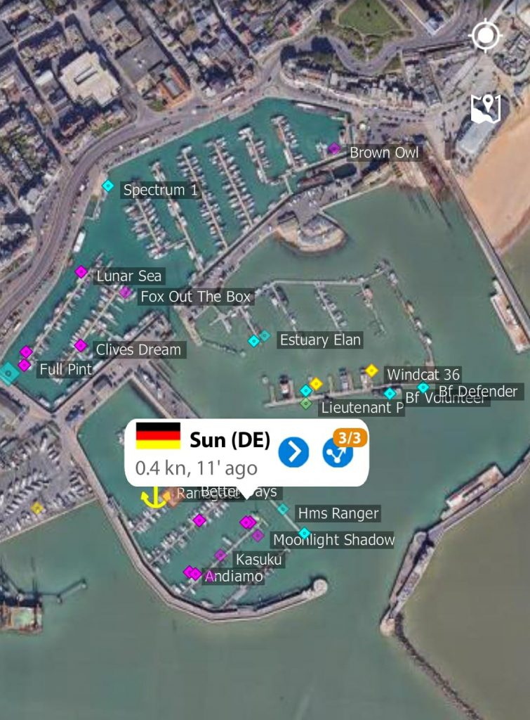 Der Vesselfinder findet uns in Ramsgate