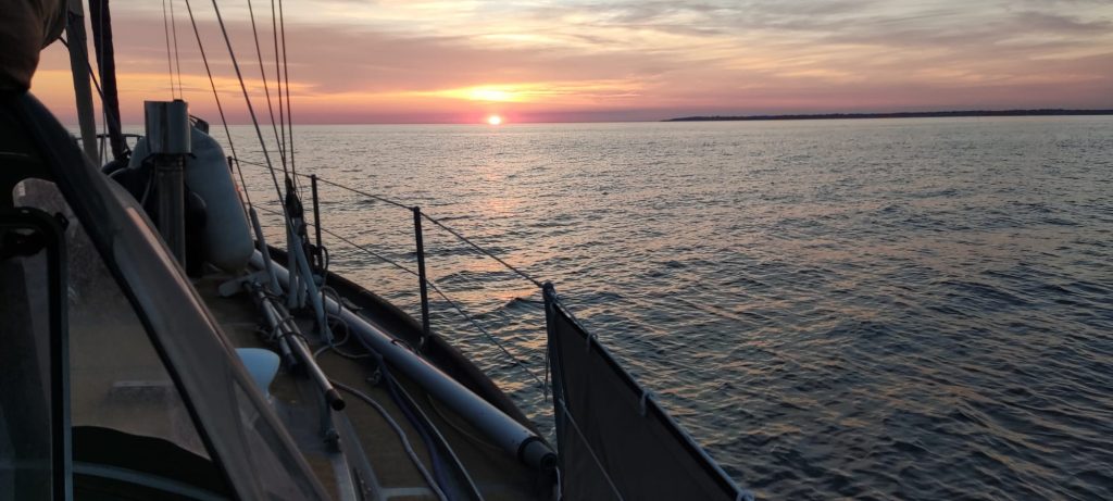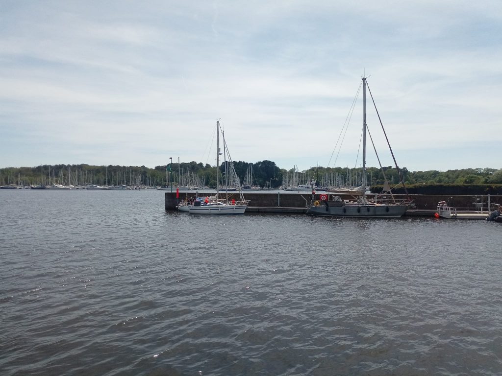Glücklicherweise ist das Wetter gut zu uns, um uns an das neue Boot zu gewöhnen. Wir teilen Wachen ein, um die nächsten Tage entlang der Südbretagne genießen zu können und bis heute haben wir Vannes, Concarneau und Quimper hinter uns gelassen. Da hier die Strömungen nicht sehr stark sind, haben wir mit Motor und der Genua die vielen Meilen bis hier in den Kanal sehr gut geschafft .
