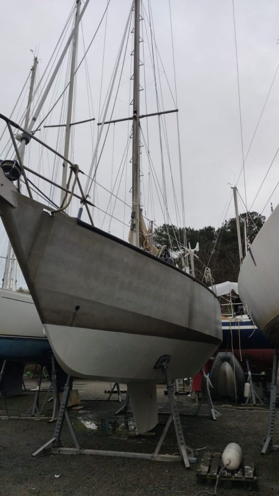 Es ist Sonntag 12 Mai 2024. Ich sitze gerade am Navigationstisch der Sun auf der 02:04 Wache. Die Nacht ist ruhig, mild und klar. Leider ist auch nur wenig Wind. Vor einigen Stunden gab es sogar Flaute. Die Sun befindet sich kurz vor der Einfahrt in den englischen Kanal. Gerade passieren wir das wilde Kap du Raz mit der Ile de Sein. Der Perkins dieselt mit 1300 Touren langsam durch die Nacht. Das ablaufende Wasser hat uns etwas abgebremst, denn eigentlich sind wir ganz gut im Zeitplan. Die Anreise nach Foleux hat trotz vieler Organisationsschritte perfekt funktioniert, der Leihwagen war in Ordnung. Die Taxifahrt zurück nach Arzal nach der Abgabe war zwar teuer, aber Johannes war vor der Zeit an der Schleuse in Arzal. Nach einem kurzen Aufenthalt auf der trockengelegten Sun haben wir alle mitgebrachten Klamotten, Ersatzteile und Lebensmittel verstaut. Ich habe noch schnell die Anoden gewechselt. Um 10 Uhr kam dann pünktlich der Sliptruck um die Sun so gegen 11:30 ins Wasser zu bringen. Noch eben schnell wurde das Antifouling an den Kontaktstellen der Palle ergänzt. Das Boot wurde auf dem Slipwagen ins Wasser gefahren und schwamm gleich auf. Der Diesel sprang im Wasser an und die Sun war wieder in ihrem Element.