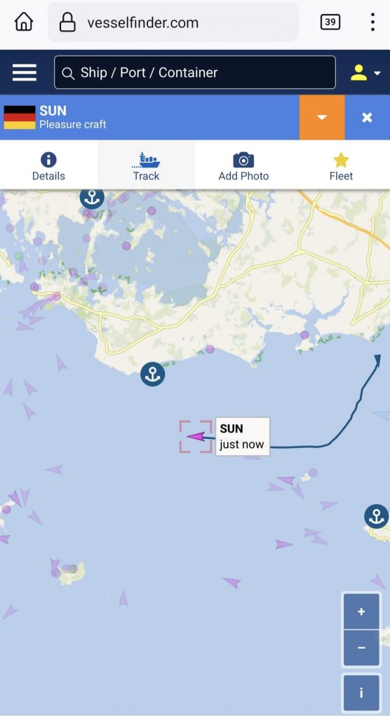 Der Vesselfinder hat uns gefunden!!